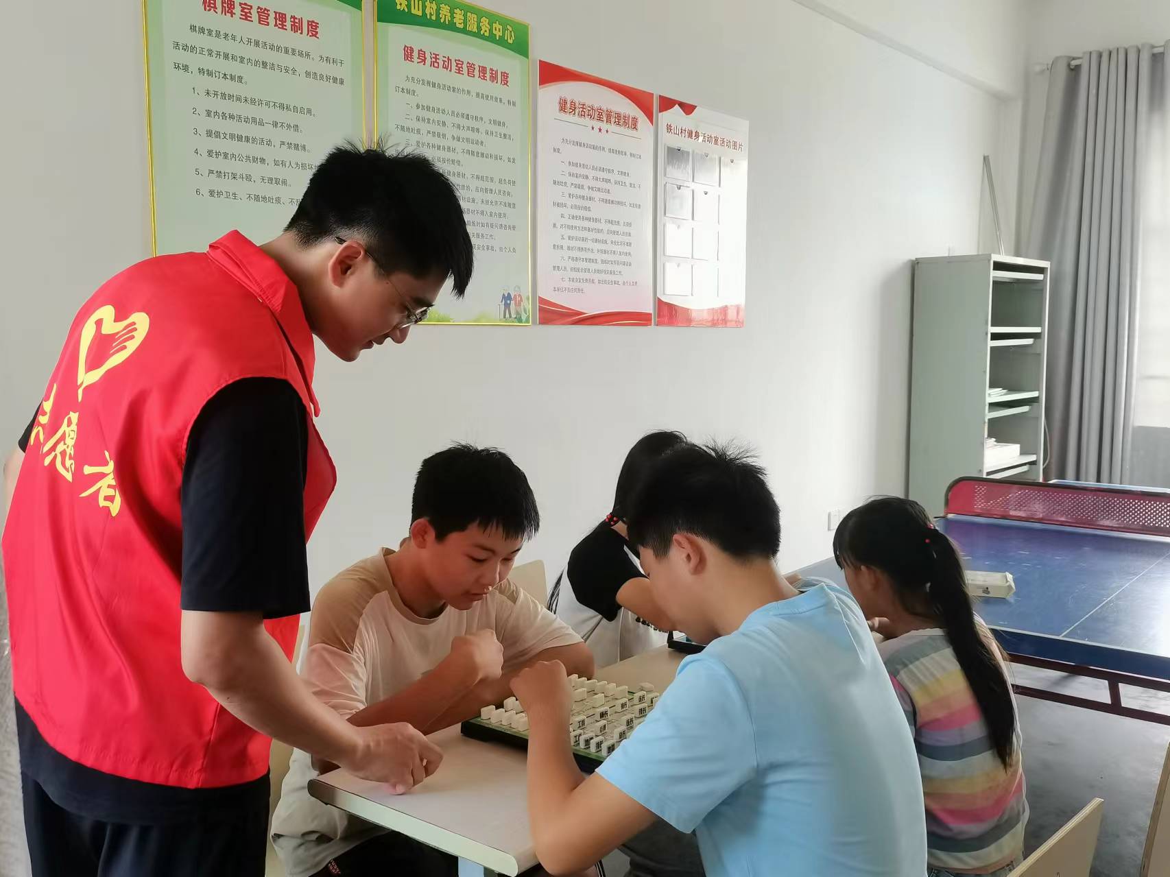 “看,我手上的這本書是四大名著之一——《水滸傳》,我們可以利用暑假閱讀圖書,豐富我們的暑期生活,也可以增長我們的知識,提高我們的文學(xué)素養(yǎng),對于我們?nèi)蘸蟮纳睢W(xué)習(xí)都是非常有幫助的一件事情。”7月21日,在孔城鎮(zhèn)鐵山村農(nóng)家書屋,村里的大學(xué)生志愿者們正在對孩子們進(jìn)行閱讀指導(dǎo)。這個(gè)暑假,2名大學(xué)生志愿者自愿擔(dān)任村農(nóng)家書屋管理員,引導(dǎo)孩子們閱讀經(jīng)典著作,激發(fā)他們的閱讀興趣。 除了指導(dǎo)孩子們閱讀,在村體育活動(dòng)室,大學(xué)生志愿者們還“觀摩”孩子們的各類棋賽,適時(shí)點(diǎn)撥。大學(xué)生志愿者朱祺文說:“參加‘桐才帶童材’志愿服務(wù)活動(dòng),我們不僅能輔導(dǎo)孩子們學(xué)習(xí),陪伴他們快樂成長,同時(shí)也能在業(yè)余時(shí)間豐富我們自己的生活,給我們帶來不同的體驗(yàn)和歷練。”