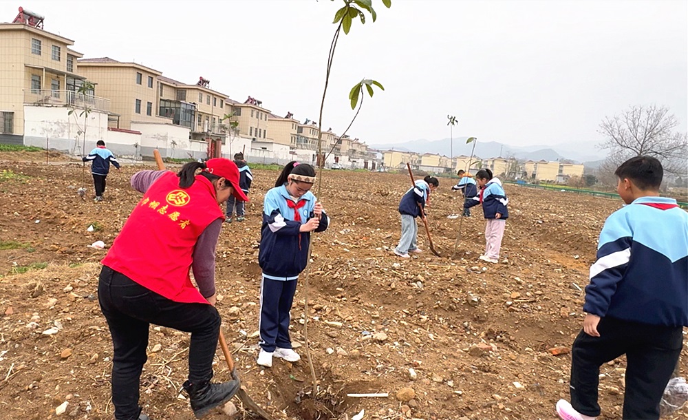 3月12日,植樹(shù)節(jié),文昌街道碧峰村與桐城中學(xué)、北街小學(xué)聯(lián)合開(kāi)展義務(wù)植樹(shù)活動(dòng)。該村巾幗志愿者與師生們同心協(xié)力,共栽植枇杷樹(shù)、桃樹(shù)等經(jīng)濟(jì)果木100余株,為鄉(xiāng)村增添了一片新綠。