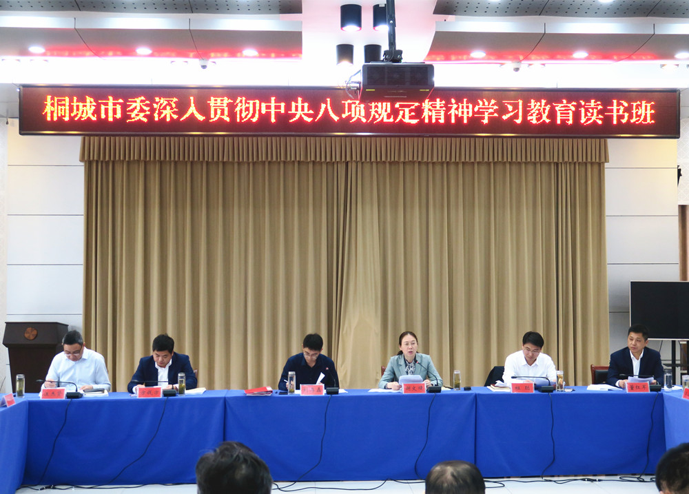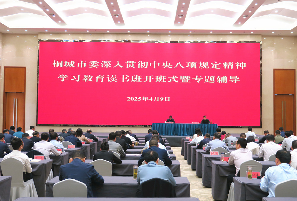 根據(jù)中央、省委及安慶市委統(tǒng)一部署,4月9日下午至10日上午,桐城市委舉辦深入貫徹中央八項(xiàng)規(guī)定精神學(xué)習(xí)教育讀書班。市委副書記、市長劉存磊主持讀書班開班式暨專題輔導(dǎo)、集中交流研討暨市委理論學(xué)習(xí)中心組學(xué)習(xí)會(huì)議并講話。市政協(xié)主席謝文婕,市委常委,其他在職縣級(jí)領(lǐng)導(dǎo)干部等參加。安慶市委黨校黨史黨建教研室主任吳潔應(yīng)邀作專題輔導(dǎo)報(bào)告。