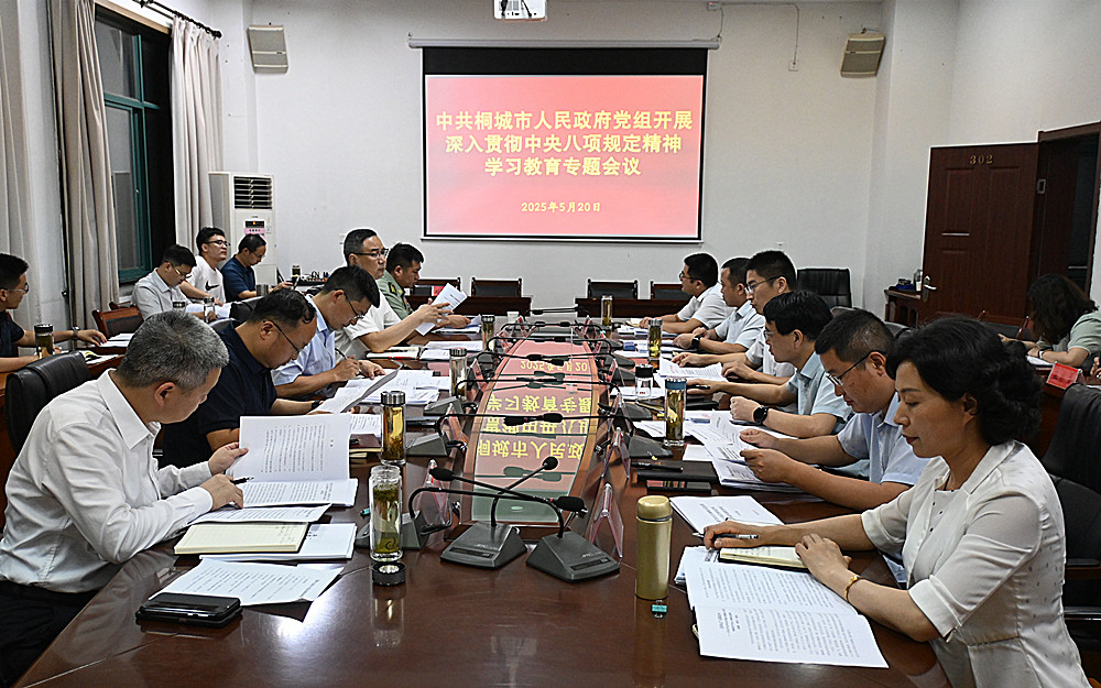 圖為市政府黨組開展深入貫徹中央八項規(guī)定精神學(xué)習(xí)教育專題會議現(xiàn)場。