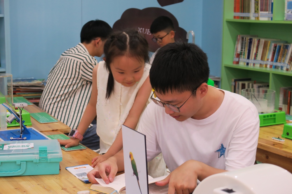 這個夏天,文昌街道西苑社區(qū)紅色港灣黨群服務(wù)站格外熱鬧。大學(xué)生志愿者們穿梭其間,用愛心和熱情為社區(qū)孩子們編織了一個充實又溫暖的假期,也讓家長們少了份牽掛。 走進服務(wù)站,窗明幾凈的空間里掛滿了孩子們的畫作和活動照片,綠植郁郁蔥蔥。近30名孩子在這里各得其樂:有的圍坐一起學(xué)習(xí)剪紙,小手翻飛間,五角星、小兔子、螃蟹等手工作品漸漸成形;有的坐在窗邊看書寫字,陽光透過樹葉灑在書頁上,光影斑駁。 西苑社區(qū)的志愿服務(wù)一直很受歡迎,暑期則采用排班制,每天都有四五名大學(xué)生在此做志愿服務(wù)。“大四畢業(yè)有長假,想為社區(qū)做點事。”即將讀研的何迪在這里進行為期一個月的志愿服務(wù),幫小學(xué)生輔導(dǎo)功課,還跟著社區(qū)工作者入戶走訪。“孩子們特別好學(xué),社區(qū)工作也讓我學(xué)到很多。” 12歲的焦佑龍從7月1日起就跟著媽媽“上下班”,現(xiàn)在變了“角色”。“爸媽總擔(dān)心我一個人在家不安全,這里有哥哥姐姐輔導(dǎo)作業(yè),有空還能下棋看書,能來這兒太幸運了。”他不僅在這里學(xué)習(xí),還跟著大學(xué)生志愿者參與社區(qū)巡查。像焦佑龍這樣的孩子不在少數(shù),他們既是被服務(wù)的對象,也成了小小志愿者。