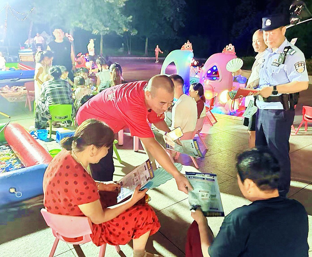 7月20日晚,新渡派出所民警及江淮義警在匯金廣場開展防網(wǎng)絡(luò)電信詐騙宣傳活動,強化群眾反電詐意識,守護(hù)群眾財產(chǎn)安全,創(chuàng)造和諧穩(wěn)定的社會環(huán)境。 連日來,該鎮(zhèn)工作人員深入人員密集場所,通過發(fā)放宣傳資料、講解識詐防詐方法,提醒居民不輕信涉及銀行卡賬號、密碼的來電、短信,不向陌生人透露個人信息,如遇網(wǎng)絡(luò)電信詐騙,立即向公安機關(guān)舉報。目前,該鎮(zhèn)共發(fā)放防詐反詐宣傳資料2100余份,受益群眾達(dá)1300余人,營造了濃厚的“識詐、防詐、反詐”社會氛圍。 國志誠 孫傳銀 攝 |