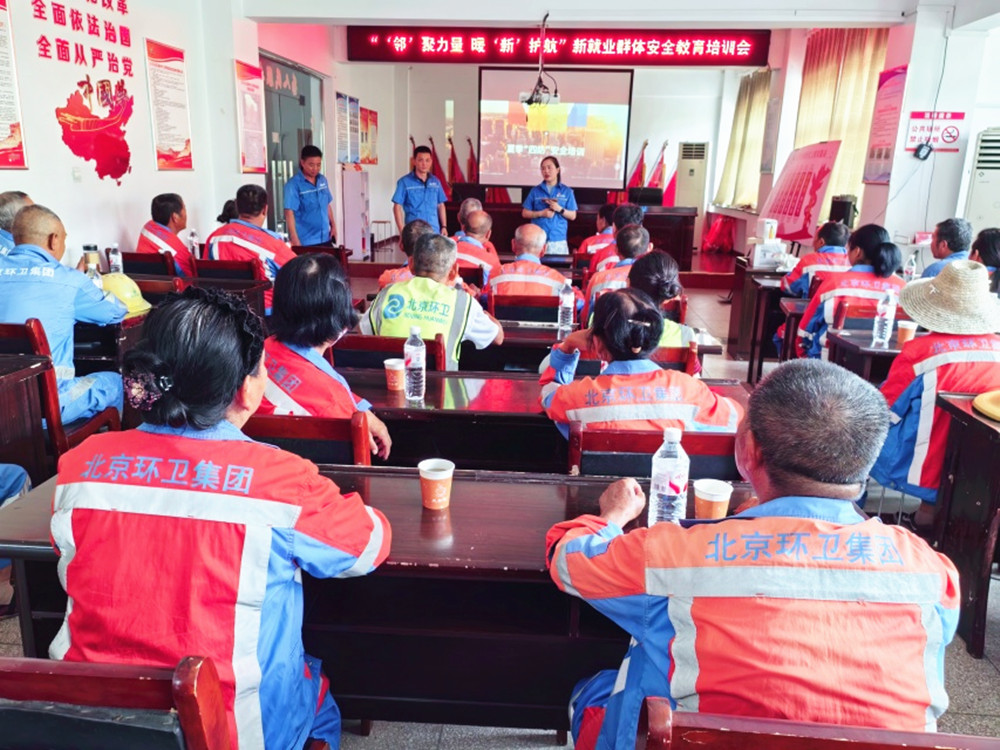連日來,高溫持續(xù)“烤”驗著戶外工作者,尤其是頭頂烈日、維護城市清潔的環(huán)衛(wèi)工人們。為保障他們的作業(yè)安全與身體健康,7月23日,龍騰街道大王社區(qū)黨總支聯(lián)合京環(huán)公司舉辦環(huán)衛(wèi)工人安全教育培訓(xùn)會,并為其送上防暑物資。 培訓(xùn)中,專業(yè)人員結(jié)合環(huán)衛(wèi)作業(yè)實際,通過播放視頻案例、現(xiàn)場演示等方式,講解反光工作服穿戴、作業(yè)站位、車輛盲區(qū)規(guī)避等要點,重點強調(diào)高溫天氣下的防暑知識和突發(fā)情況應(yīng)對措施。“平時總想著快點打掃干凈,有時會忽略安全細節(jié)。今天的培訓(xùn),讓我明白了保護好自己才能更好地工作。”一位從業(yè)十余年的環(huán)衛(wèi)工人說道。