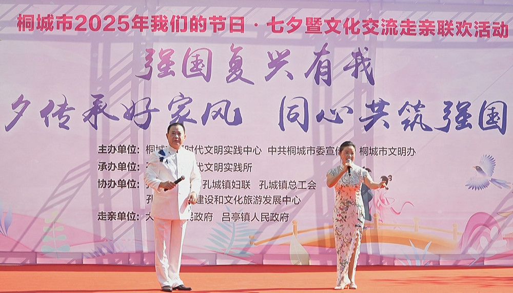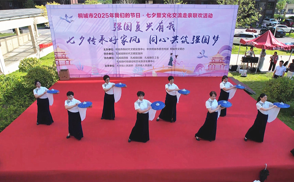 8月27日,桐城市2025年“我們的節(jié)日・七夕” 暨文化交流走親聯(lián)歡活動在孔城鎮(zhèn)桐梓家園小區(qū)熱鬧開場,數(shù)百名村民歡聚一堂,在載歌載舞中傳承和弘揚“六尺巷禮讓家風”,共繪宜居宜業(yè)和美鄉(xiāng)村新圖景,讓“七夕傳承好家風,同心共筑強國夢” 的主題深入人心。