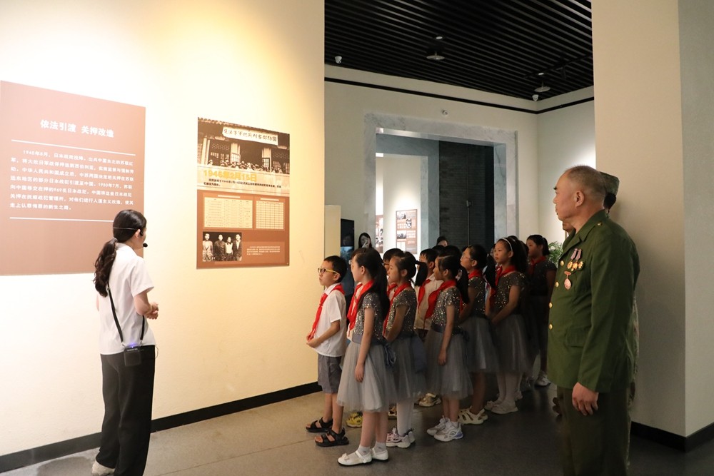 為充分發(fā)揮紅色資源的鑄魂育人功能,進一步激發(fā)全市上下愛黨愛國熱情,9月3日下午,桐城市人武部、市委宣傳部、團市委、市青少年校外活動中心聯(lián)合開展“銘記崢嶸歲月 傳承愛國情懷”活動。 活動中,基干民兵代表、北街小學少先隊員代表共同參觀“正義審判——新中國審判日本戰(zhàn)犯史實特展”。展覽通過詳實的歷史文獻、珍貴的影像資料、高度還原的場景模型,系統(tǒng)梳理了新中國成立后依法審判日本戰(zhàn)犯的全過程,清晰展現(xiàn)了不容忘卻的歷史真相。 隨后,大家集中觀看紀念中國人民抗日戰(zhàn)爭暨世界反法西斯戰(zhàn)爭勝利80周年大會、《時代楷模:陸軍某合成旅“楊根思連”》《“最美新時代革命軍人”視頻公益廣告》《少年般絢麗》《中國青年》等愛國主義題材短視頻。